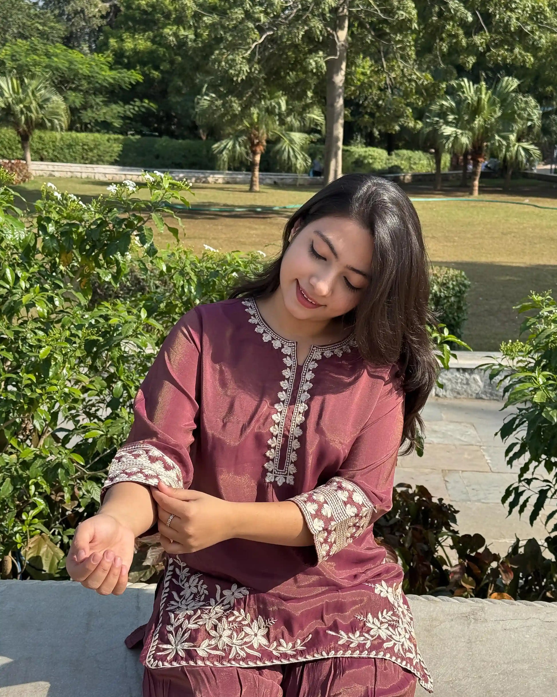 Elevate your ethnic wardrobe with this stunning Onion Farshi Salwar, the perfect blend of tradition and contemporary style. Featuring an elegantly short kurta adorned with intricate machine work, this ensemble captures the latest fashion trends while maintaining timeless appeal. The delicate embroidery details add sophistication and visual interest, making it ideal for casual gatherings, festivals, or everyday wear. The lavender hue offers a refreshing alternative to traditional colors, ensuring you stand out with grace and confidence. Comfortable, versatile, and undeniably chic—this is the statement piece your collection has been waiting for.