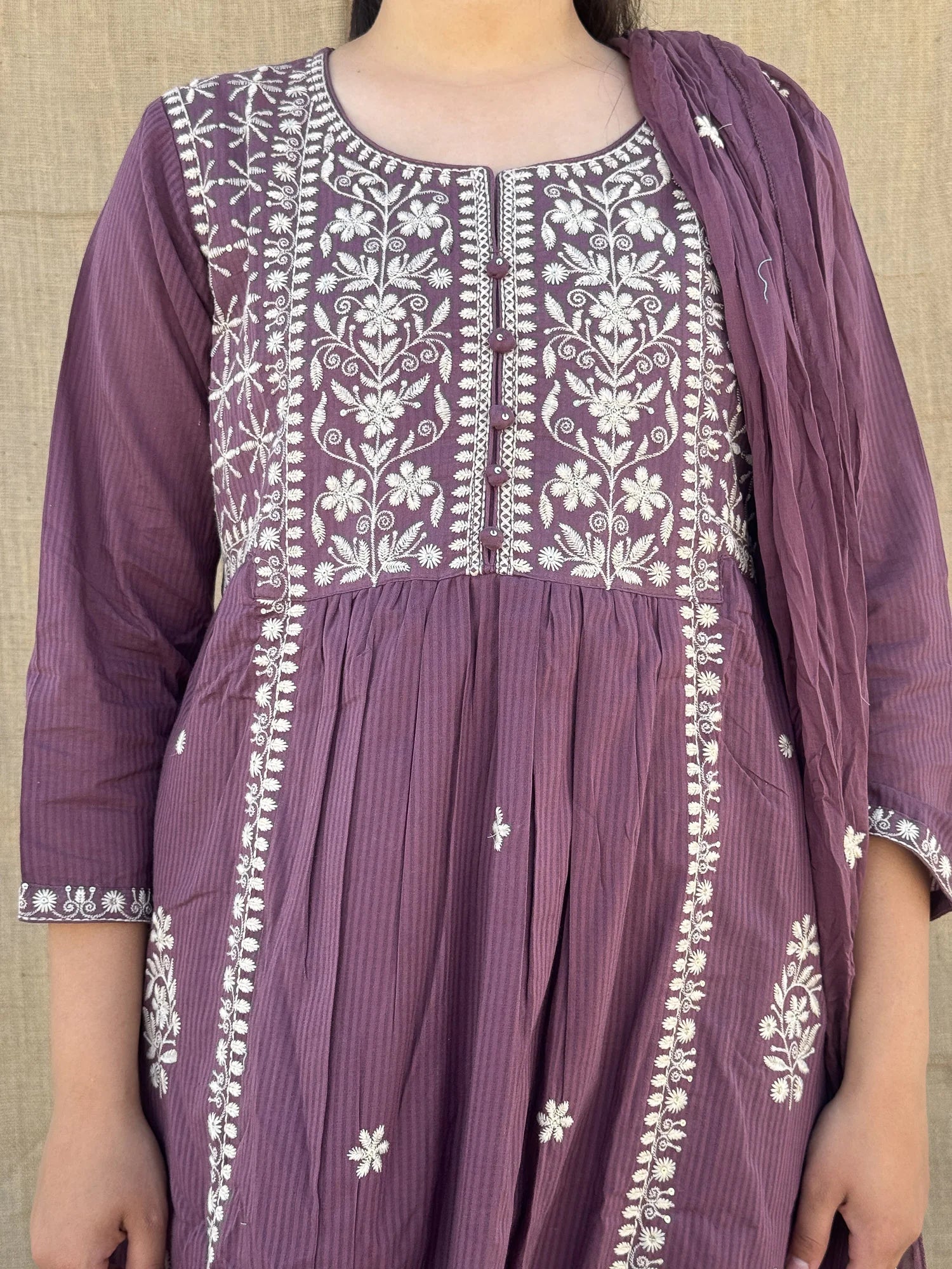 Experience the exquisite beauty and comfort of Roslic™Lilac Cotton Suit with White Thread Work. The delicate white threadwork adds a touch of elegance to the flowy design, while the soft cotton fabric ensures maximum comfort. Complete your look with the matching dupatta. Elevate your style with this stunning lilac suit.