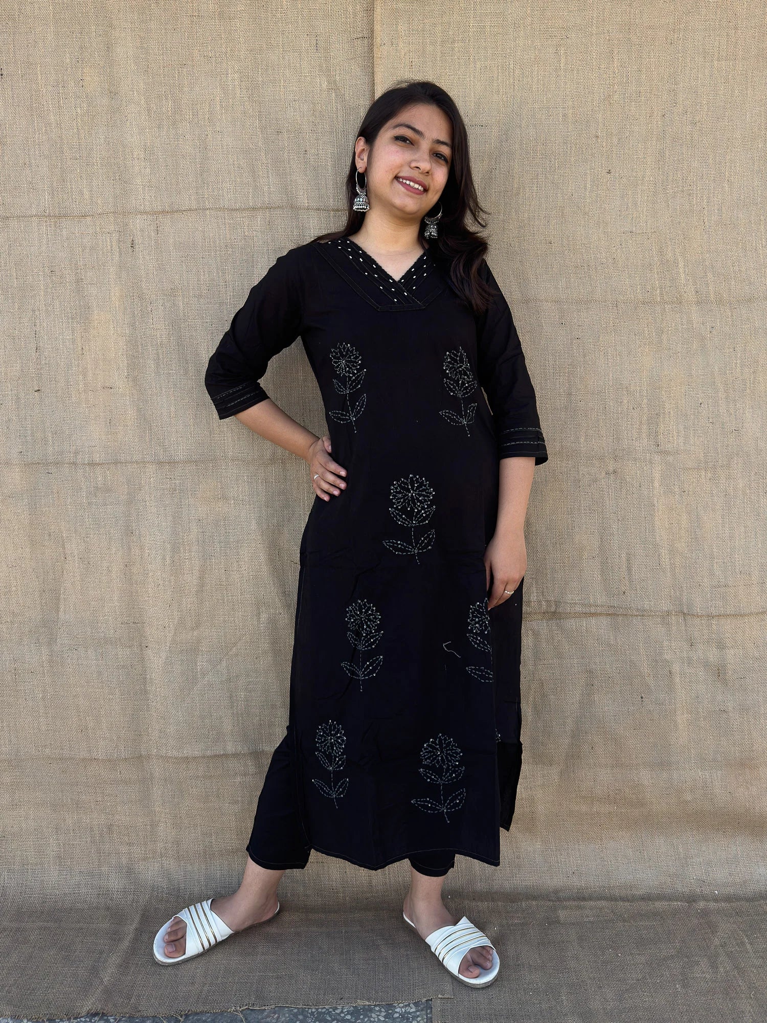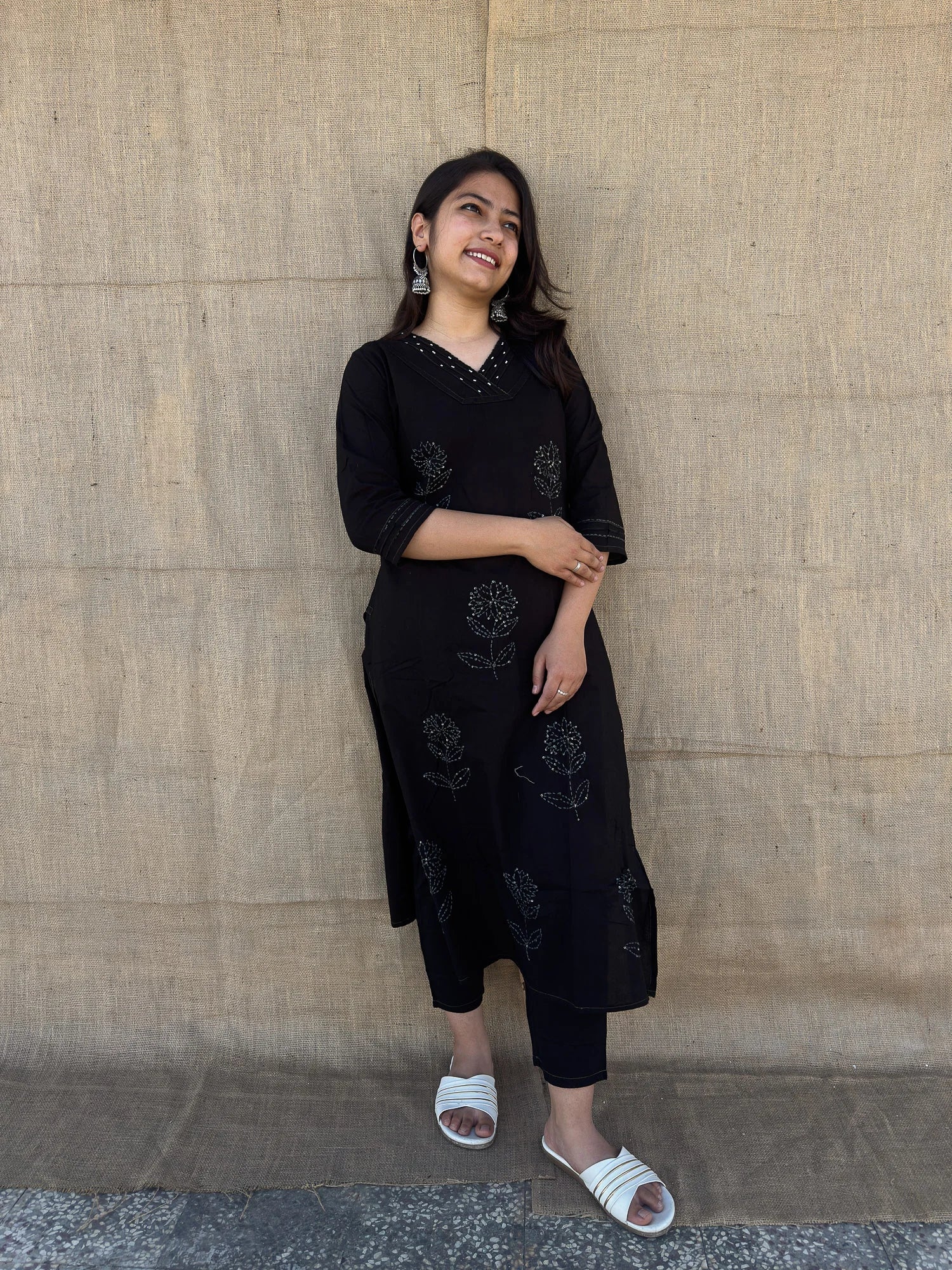 Roslic™ black cord set with flower tread work is perfect for summers. The pure cotton fabric and intricate flower tread work make it a must-have for any wardrobe. The black color adds a touch of elegance and sophistication, while the lightweight material keeps you cool and stylish all day long.